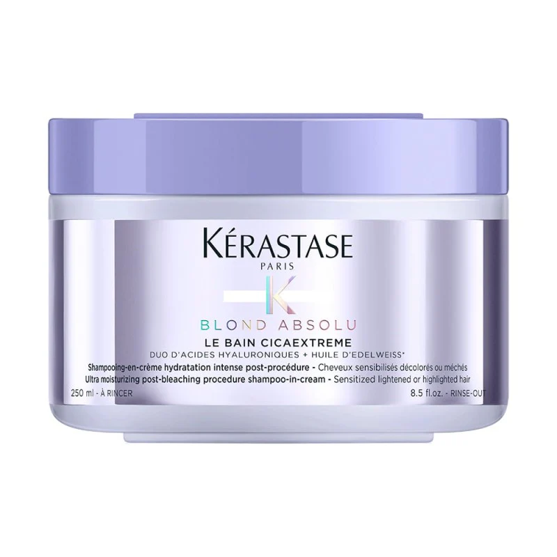 Champú en Crema para Cabello Rubio. Este champú con ácido hialurónico, en formato en crema es para cabello rubio decolorado. Su textura ultra suave, rica y cremosa genera una espuma altamente sensorial, que lava sin fricción aportando una hidratación intensa sin aportar peso al cabello. Hidrata intensamente el cabello teñido