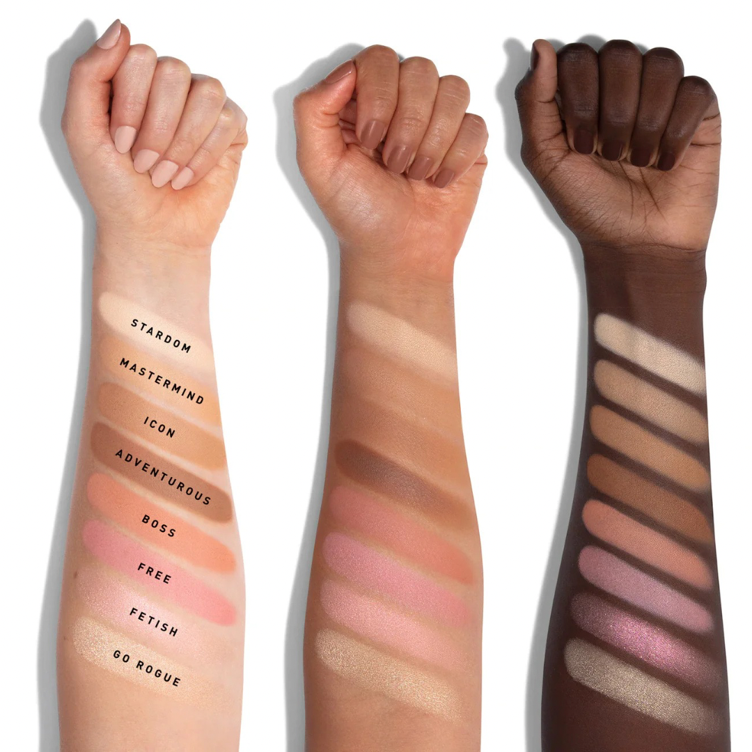 Paleta para el rostro con un contorno y un iluminador mate, dos rubores, dos bronzers y dos iluminadores. Fórmula hiperpigmentada y de larga duración.