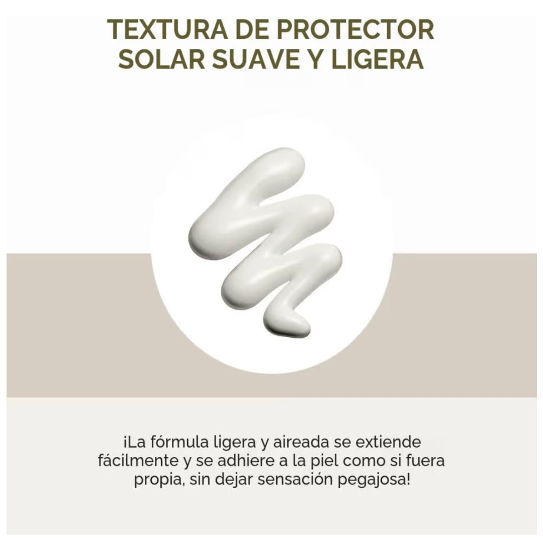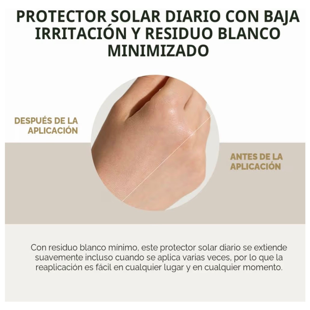 Un protector solar físico suave con SPF30+ protege la piel de los rayos UV.
